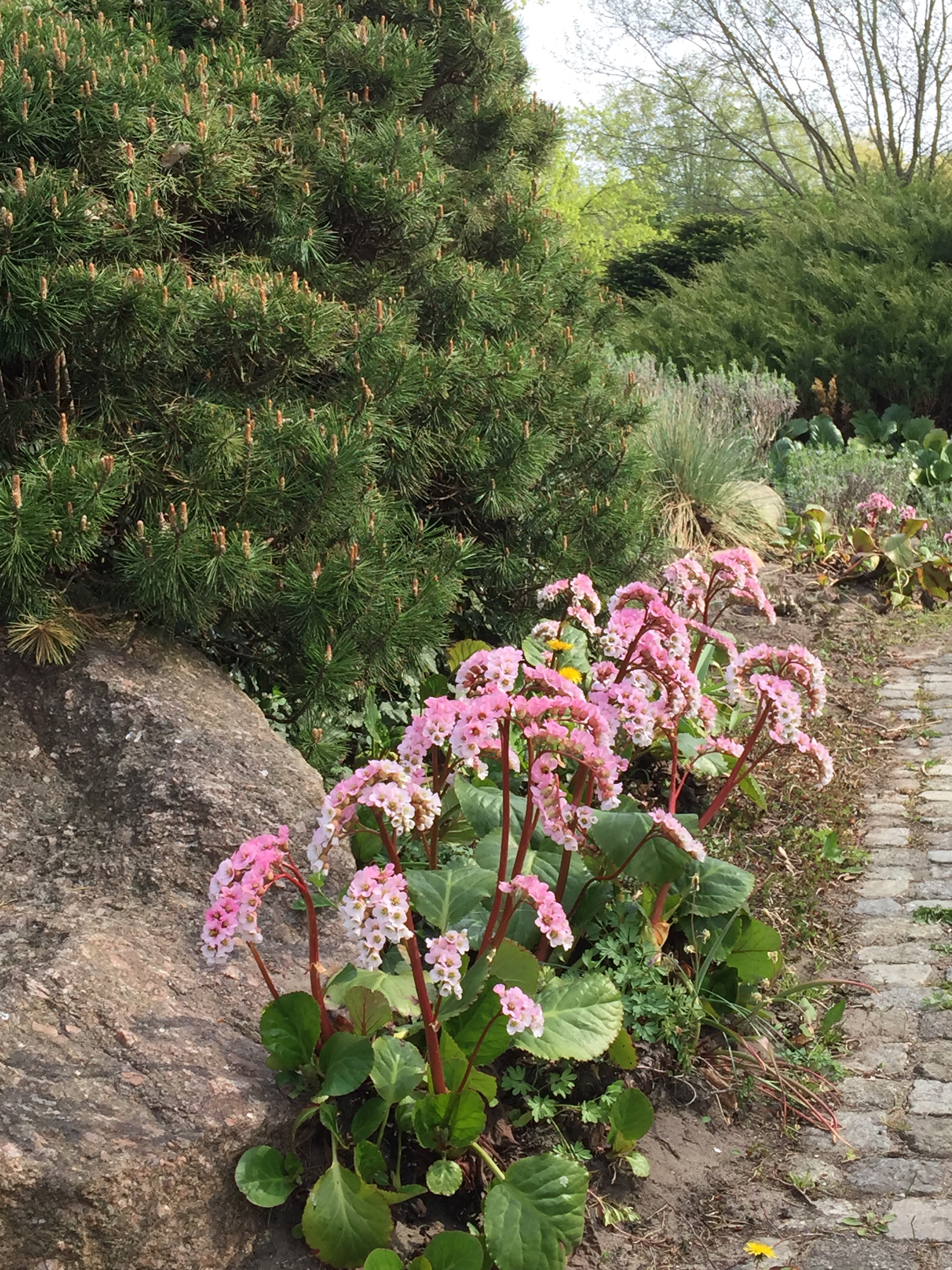 Bergenien und Pulsatilla Küchenschelle blühen bereits.