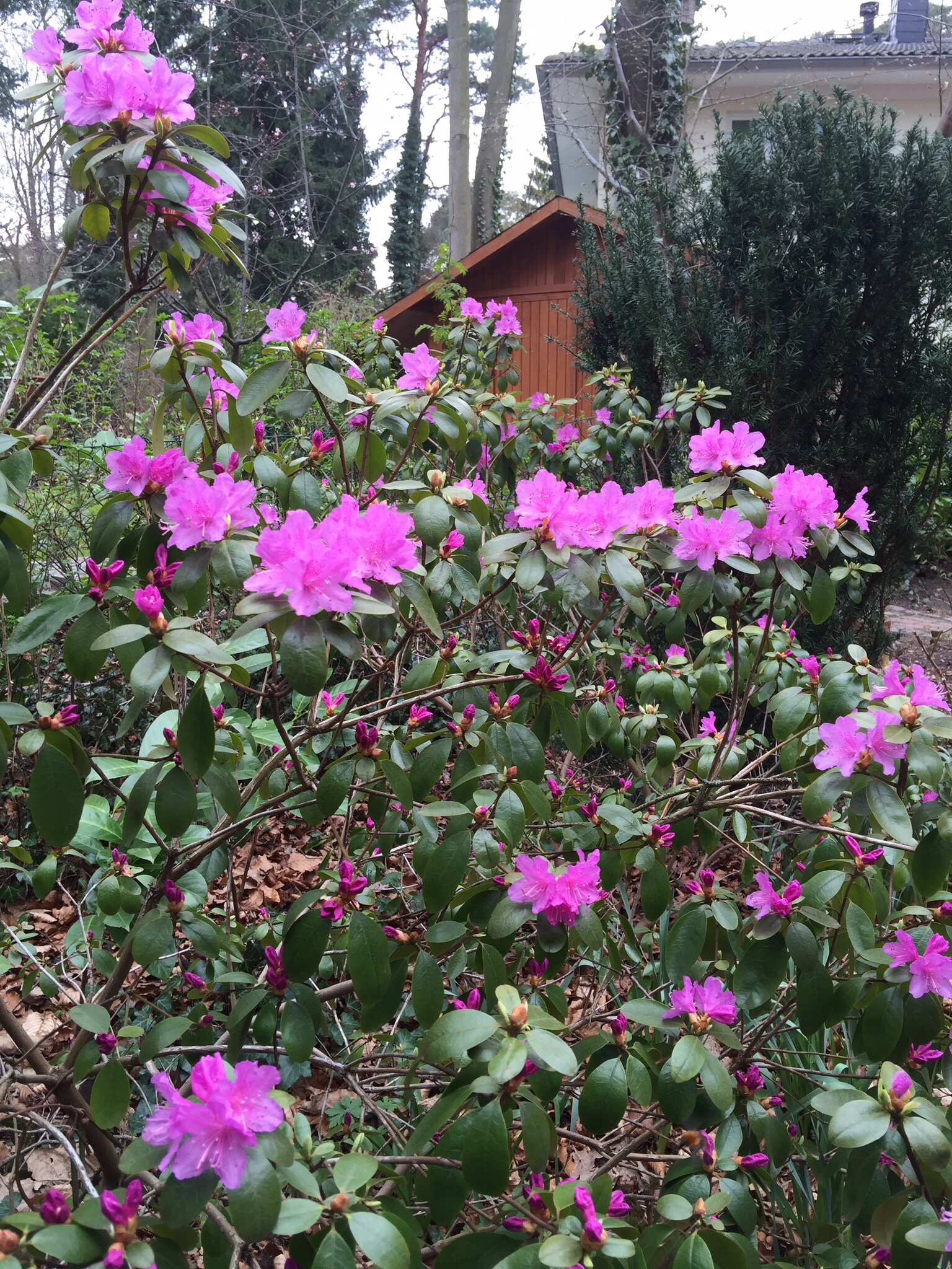 Es macht schon Freude, sich das Ergebnis in etwa ein bis zwei Wochen, Mitte März auszumalen. So sah der Rhododendron praecoxs im Frühjahr 2015 aus.