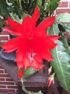 Das Gegenstück in rot. Eine Pracht, oder? Die Urmutter dieses Epiphyllums stand schon vor 50 Jahren als alter Stock auf dem Hof meiner Grossmutter. Diese rote alte Sorte blüht pro Blüte mehrere Tage lang.
