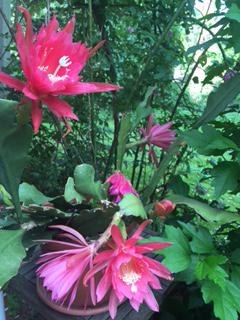 Auch im Gehölz- und Schattengarten kann es in der etwas Blütenarmen Zeit spektakulär blühen. Rosen sind ein rares Gut im Schattengarten, brauchen die wenigen Sonnenplätze und spezielle Beachtung. Dazu ein nächstes Mal. Heute sind die Königin der Blüten im Fokus. Blattkaktus oder Epiphyllum.