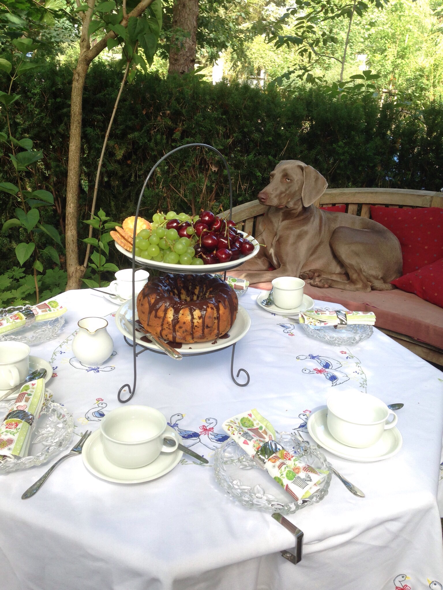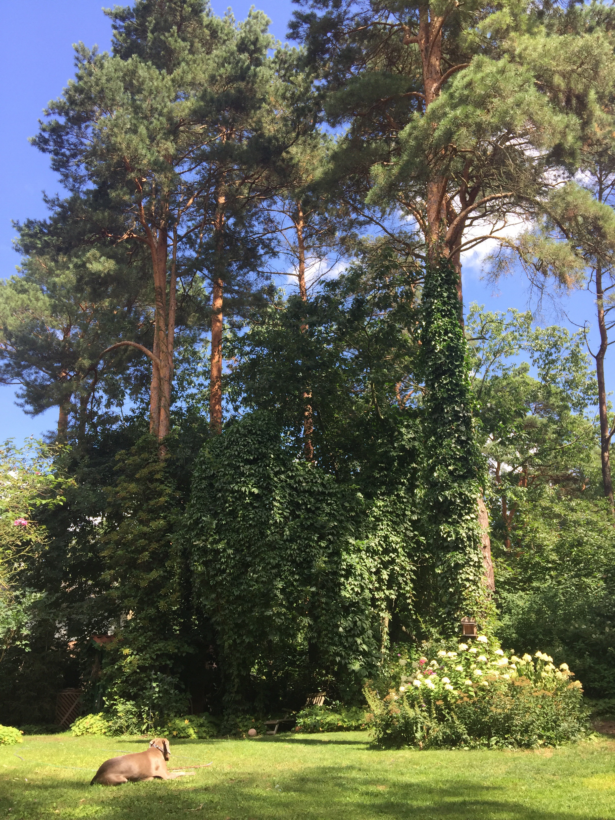 Ich bin bei dem feuchten kalten dunklen Vorweihnachtswetter dieses Jahr glücklich, schöne Impressionen mit Wolkenblau und Sonnenstrahl, Gartengrün und Kaffekranz mit Hund mit meinen Lesern teilen zu können. Hoffentlich hebt es auch Ihre Laune etwas.