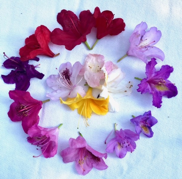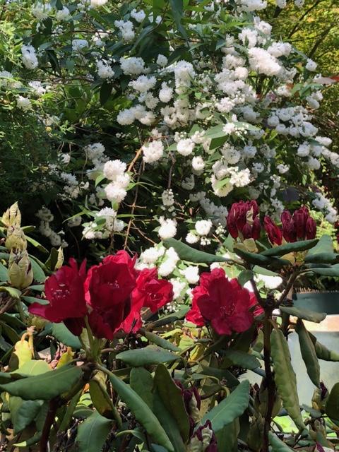 Die ersten sind verblüht, wie die ganz frühen Rhododenron praecox im April und der R. cunningham white Mitte Mai.