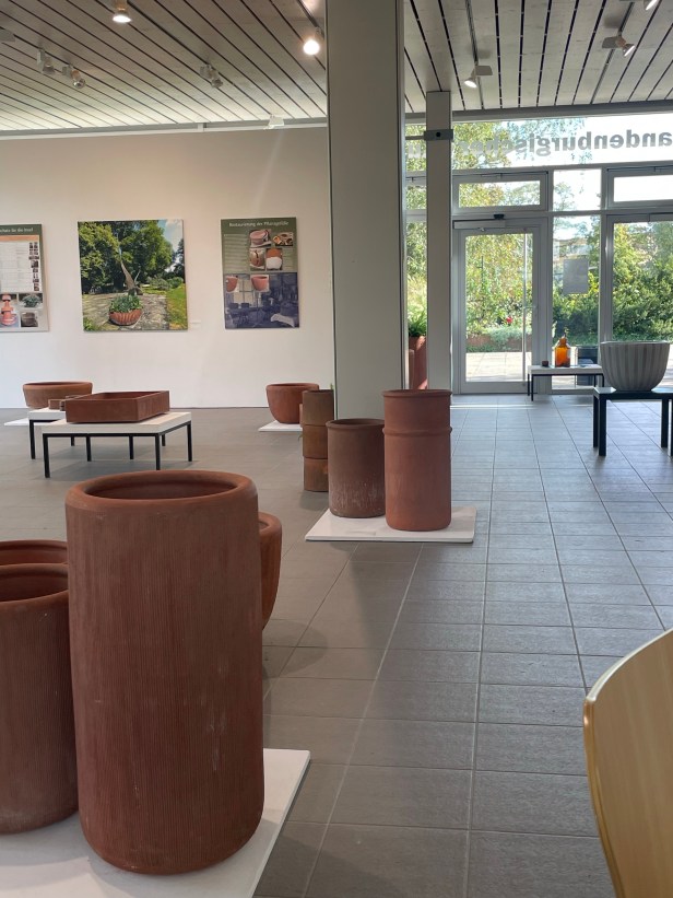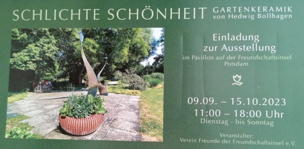 Vom 9.9.-15.10.2023 noch ist im Pavillion auf der Potsdamer Freundschaftsinsel eine wunderbare Ausstellung : Schlichte Schönheit Gartenkeramik von Hedwig Bollhagen